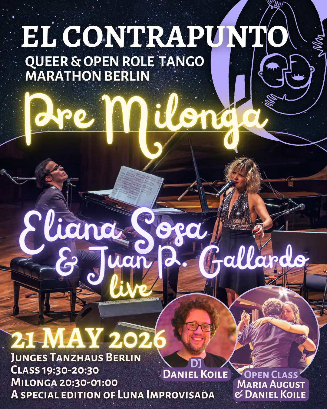 | Thursday | 21-05-2026 | 19:30-01:00 | Pre Milonga – open for everyone – with a class |